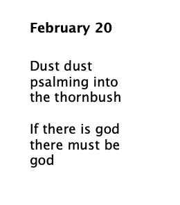 Kamau Brathwaite has unhinged an allowance in my poetry for sound that urges feeling, it becomes obvious the more you play with this. I also replay in my head something he said in a talk I watched online, about his first time seeing snow— he said he was so amazed that it makes no sound when it falls to the ground.